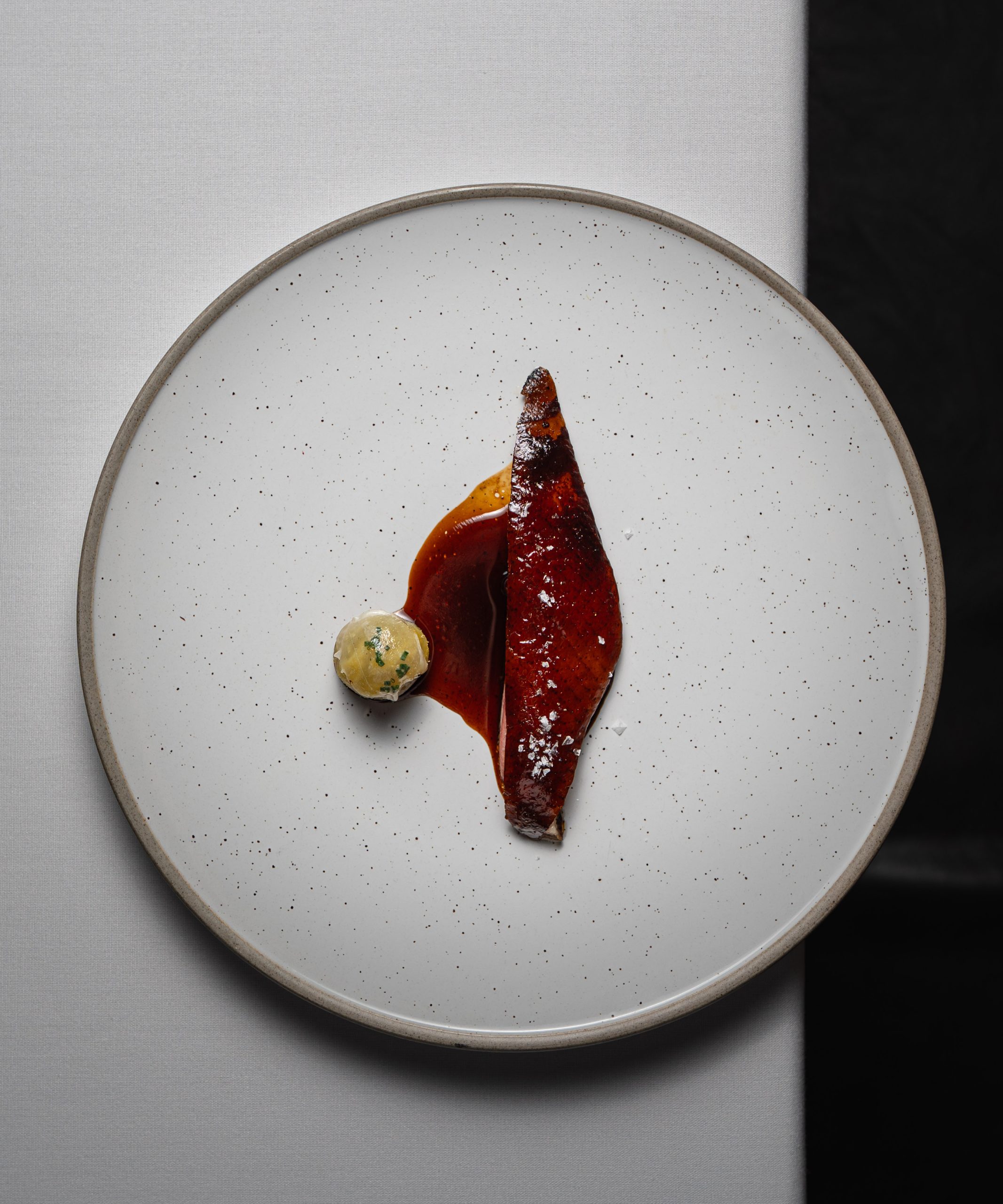 Aurum Poultry Co. Duck | Sweet potato, lardo, duck jus.