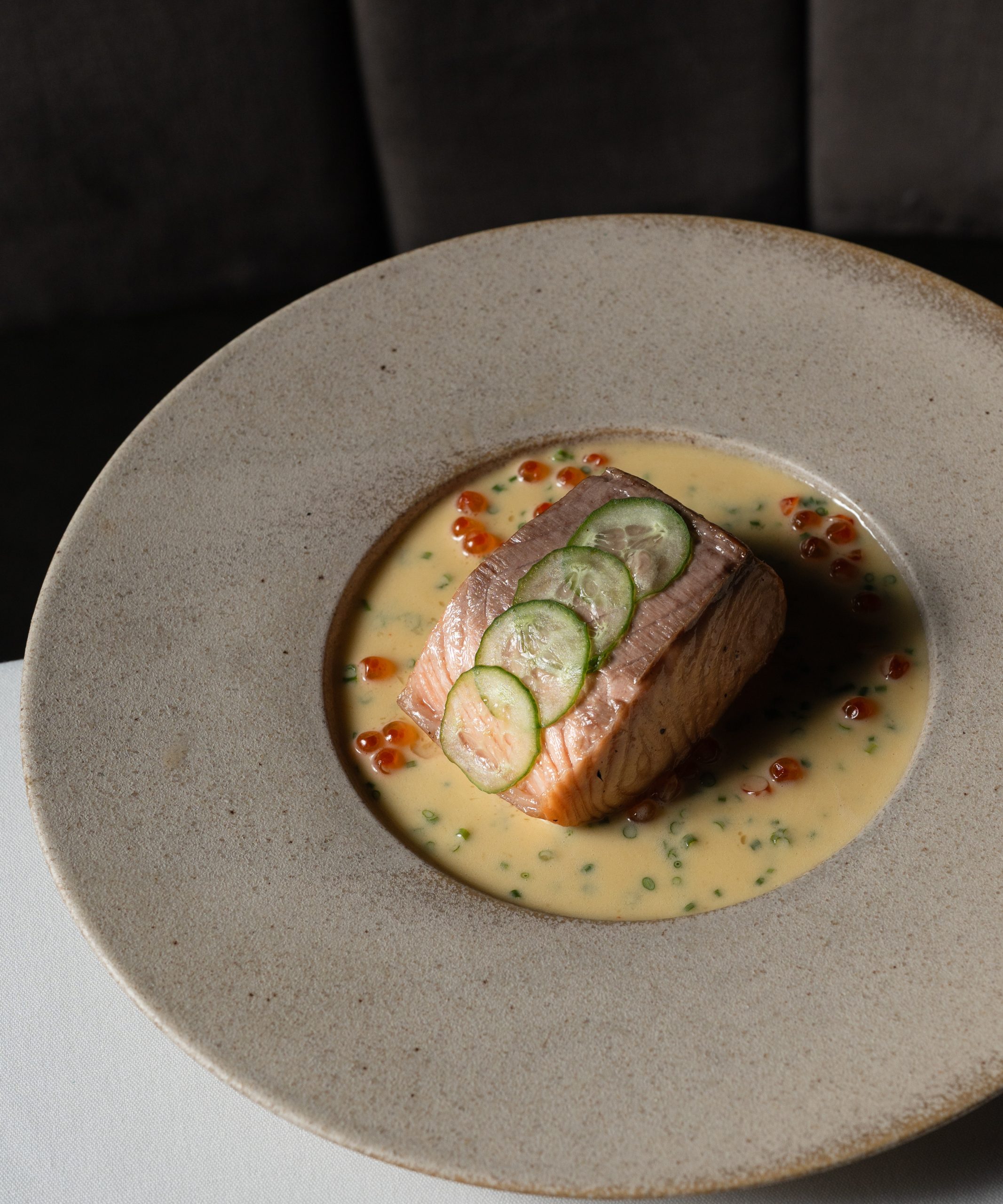 Light Semi-Smoked King Salmon | Pickled Cucumber, Beurre Blanc, Dill